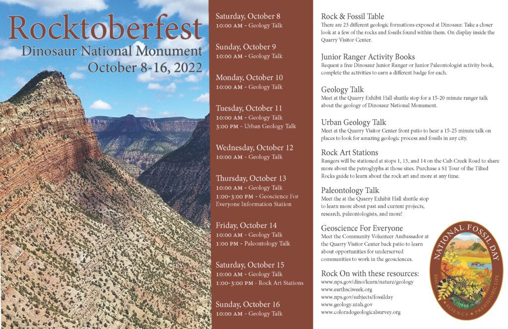 Celebrate Earth Science Week, National Fossil Day, and International Archeology Day at Dinosaur National Monument’s Rocktoberfest from October 8-16, 2022