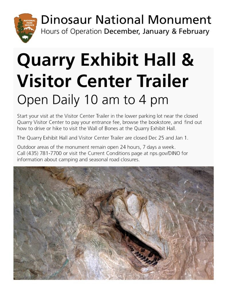 Winter hours at Dinosaur National Monument beginning December 1