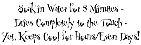 Blubandoo products quickly dry to the touch, but stay hydrated, keeping the wearer cool (due to the slow gel evaporation) for several hours, even days, before completely drying and returning to their original shape.